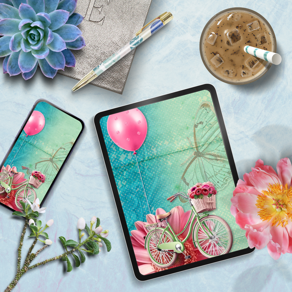 🚲 I designed these little pieces of digital art from scratch in Photoshop (no cheap Canva templates here!) I used several fun vintage-looking bicycle illustrations and graphics. I created my own digital paper backgrounds.